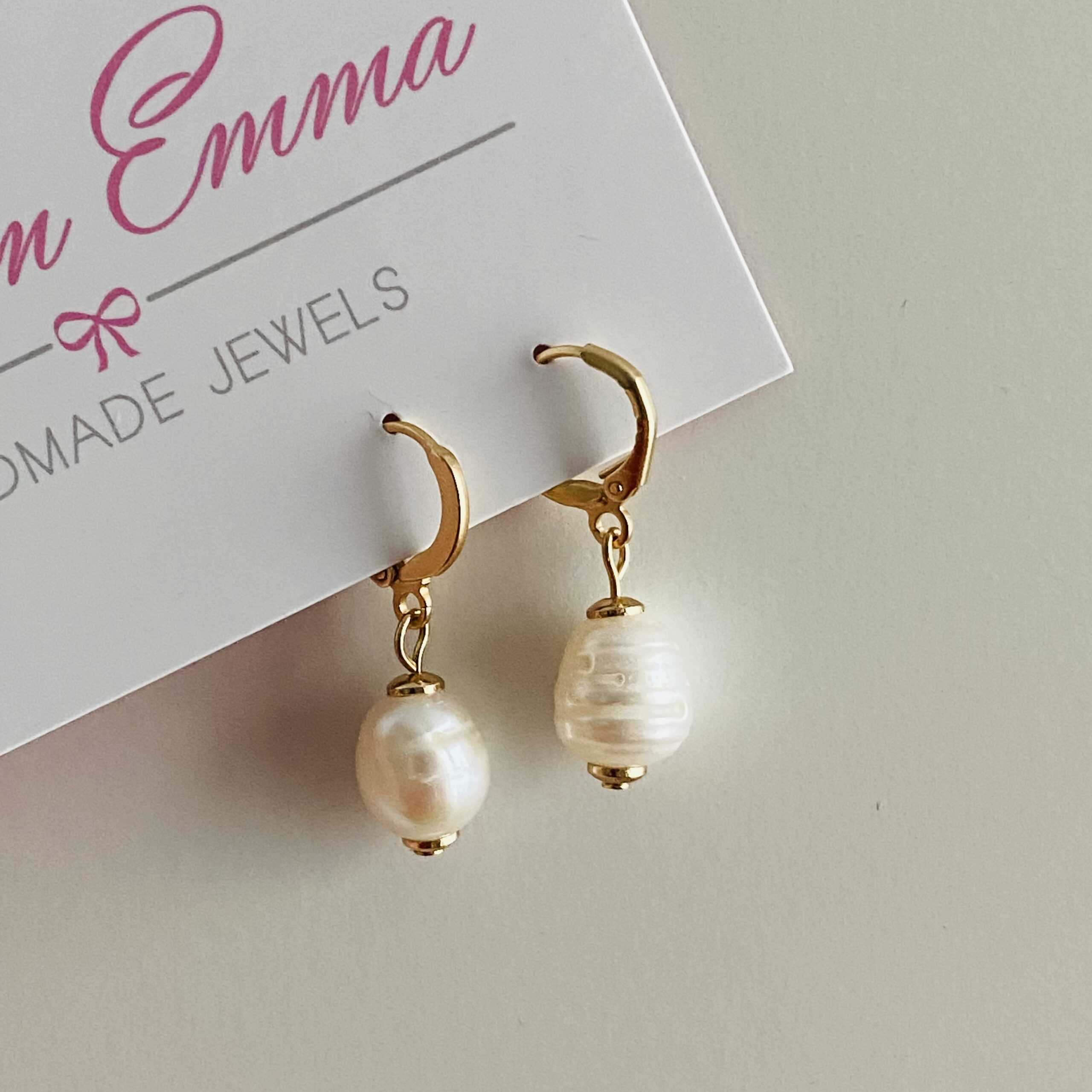 Deze kleine oorbellekes zijn gemaakt met zoetwaterparels.